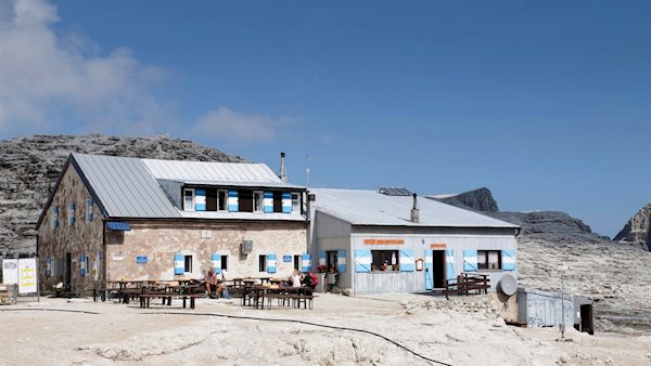 Inmitten der Sellagruppe liegt die gemütliche Boehütte mit ihren charakteristischen blau-weißen Fensterläden. Auf der kargen, einer Mondlandschaft nicht unähnlich sehenden Hochebene lädt sie zu Füßen des Piz Boe zur Einkehr.