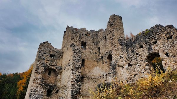 Burg Hauenstein thront auf einem riesigen Felsblock, der in grauer Vorzeit vom Schlern herabstürzte.