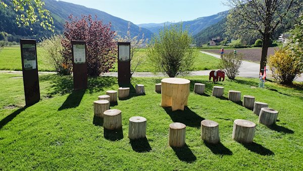 Dahinter gelangt man alsbald auf den bereits beschrittenen Weg. Reich an Impressionen und neuem Wissen kehrt man auf ihm zum Ausgangspunkt zurück. Wer gut aufgepasst hat, weiß nun beispielsweise, welcher Waldbewohner Südtirols das größte und mit bis zu sechs Kilo auch schwerste Geweih trägt oder warum die fleißigen Bienen Rund- und Schwänzeltänze vollführen...