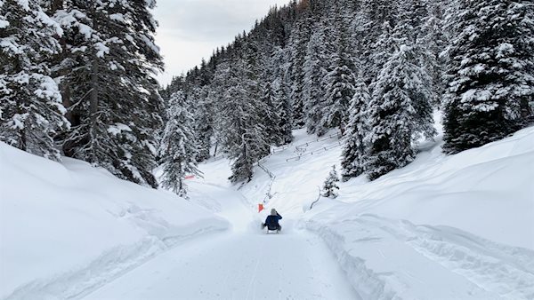 Von der Glatsch Alm steigt der geradeaus führende Wanderweg zur nahen Rodelbahn an. Sie führt in flotten Schwüngen durch die schöne Winterlandschaft und lässt dabei das Herz aller Rodelliebhaber höher schlagen.