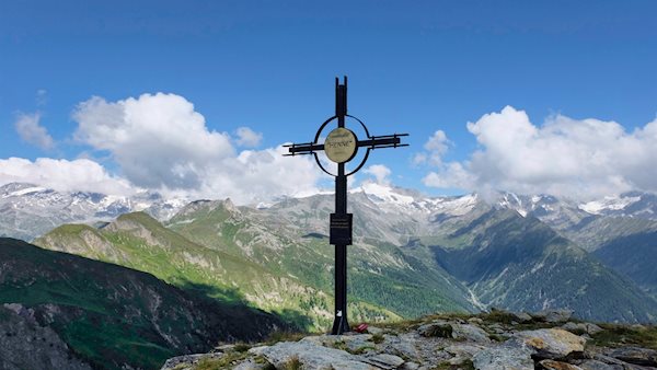 Wenngleich sie namentlich nicht ausgeschildert ist, ist sie daher nicht zu verfehlen: Anfangs über den links abzweigenden Kellerbauerweg Nr. 27 und wenig später über den breiten Grasrücken steigt man zu ihrem formschönen Gipfelkreuz hoch, neben dem sich ein umwerfend schöner Panoramablick auf die ringsum aufstrebende Ahrntaler und Pustertaler Bergwelt entfaltet.
