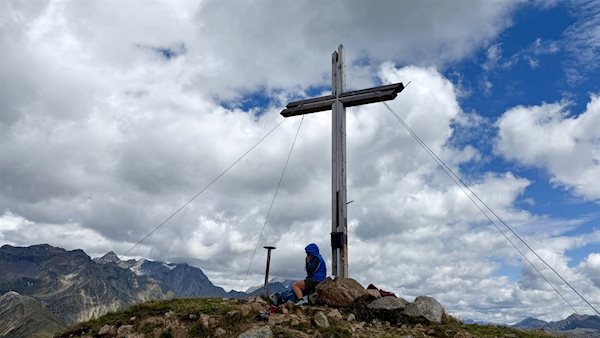 Nun folgt der wohl anspruchsvollste Abschnitt der Wanderung, der ein gewisses Maß an Trittsicherheit und Schwindelfreiheit voraussetzt: der Aufstieg über die steile Gipfelflanke. Er führt über gesicherte Holztreppen, teils seilversicherte Felsstufen und -blöcke und zuletzt über Blockwerk zum formschönen Gipfelkreuz.