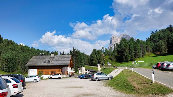 Die Wanderung zur Halslhütte beginnt auf dem kleinen, zwischen Afers und dem Würzjoch gelegenen Wanderparkplatz Fistilboden.