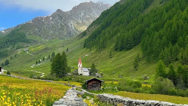 Die Heilig-Geist-Kirche in Kasern im hintersten Ahrntal ist nicht nur die nördlichste Kirche Südtirols, sondern auch einer der schönsten Wallfahrtsorte des Landes. Vom Talschluss führt ein kurzer, von malerischen Almwiesen und hohen Bergen umrahmter Kreuzweg zu diesem pittoresken Kleinod aus dem 15. Jahrhundert.