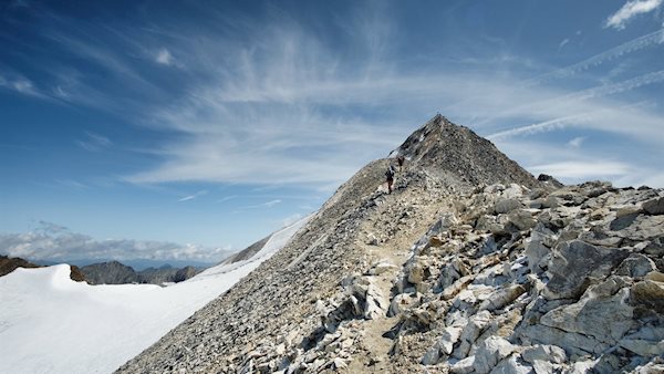 Zum Gipfelkreuz des Hochfeiler auf 3.509 m Höhe und zur Hochfeilerhütte von Pfitsch