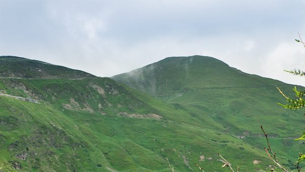 Hinter der Waldgrenze schlängelt sich der Steig durch blumengeschmückte Bergwiesen und Heiden zum 2.165 m hohen Sandjoch mit seinen Sendemasten empor, auf dem die Grenze zwischen Italien und Österreich verläuft.