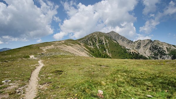 Hinter der Baumgrenze führt der Wanderpfad im teils sanfteren, teils steileren Anstieg über die langgezogene Gipfelflanke der Karspitze. Neben dem hölzernen Gipfelkreuz entfaltet sich schließlich ein nahezu unendlich anmutendes Panorama: Der Blick schweift von den Sarntaler Alpen über die Pfunderer Berge, die Rodenecker Alm und die Plose zu den in der Ferne aufragenden Dolomiten.