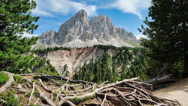 Direkt am Parkplatz zweigt der breite, sanft ansteigende Wanderweg Nr. 8A in Richtung Munt de Fornella ab. Er schlängelt sich vor der beeindruckenden Kulisse des steil aufragenden Peitlerkofel und der Aferer Geisler durch die sanft gewellten, von Bäumen und einzelnen Scheunen bestandenen Blumenwiesen. Am linken Wegesrand öffnet sich nach wenigen Gehminuten ein beeindruckender Ausblick auf die freigelegte Nordseite des Peitlermassivs, die tiefe Einblicke in die Tektonik der Dolomiten gewährt.