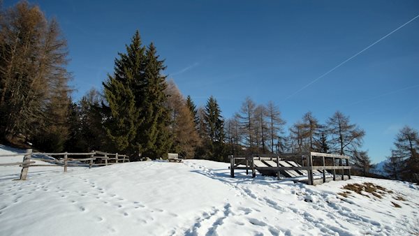 Auf dem Gols, einer sonnigen Anhöhe hoch über Terenten, laden die Natursolarien zum Verweilen und Sonnenbaden ein.