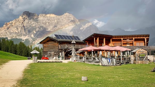 Er führt im angenehmen Abstieg durch sanft gewellte Almwiesen und öffnet dabei verträumte Ausblicke auf die Conturinesspitze, den Lagazuoi, den Sas de Stria, den Settsass, die Marmolata und den Pisciadu.