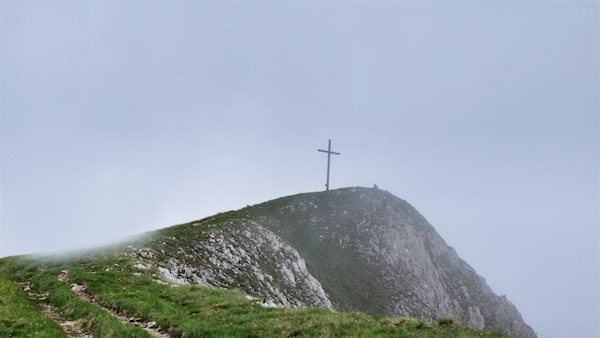 Nahe einem kreuzgeschmückten Aussichtspunkt zweigt rechts der Weg Nr. 12B ab, der über die großenteils bewaldeten Hänge an der gemütlichen Almhütte Ücia Picio Pre vorbei zum Furkelpass zurückführt.