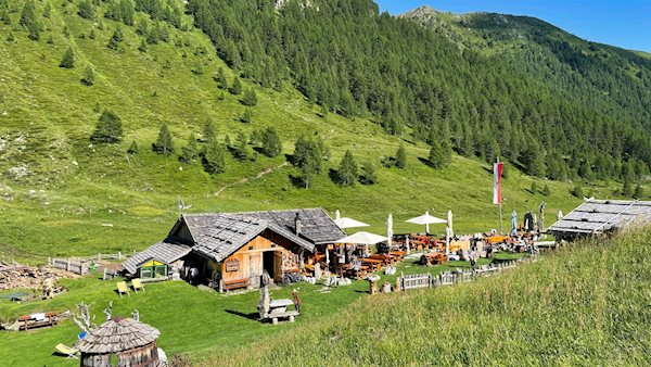 Nach rund fünf Kilometern sanften Wanderns erreicht man den Talschluss, in dem gleich zwei Hütten zur Einkehr laden: die Pranter Stadlhütte und die dahinter liegende Wieserhütte. Wir entscheiden uns diesmal für die Pranter Stadlhütte, in der die Wanderer mit traditionellen Südtiroler Hüttengerichten vom klassischen Speckbrettl über die Käsenocken bis hin zum süßen Apfelstrudel bewirtet werden. Die Kinder dürfen sich überdies auf einen kleinen Spielplatz samt Trampolin freuen.