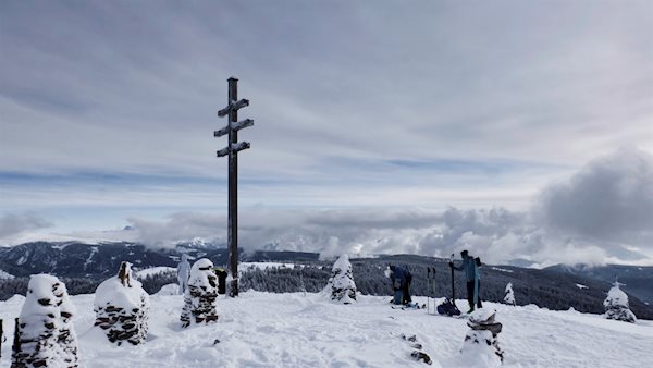 Von den Stoanernen Mandln im Sarntal geht auch im Winter eine geheimnisvolle Wirkung aus. Wenn die Hohe Reisch und die unzähligen auf ihr thronenden Steinmännchen in glitzerndes Weiß getaucht sind, führt eine gleichermaßen schöne wie einfache Skitour und Schneeschuhwanderung auf diese aussichtsreiche Bergkuppe.