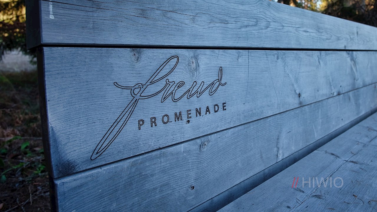 Unterwegs laden zahlreiche, mit Zitaten und Fotos geschmückte Bänke zum Sinnieren und Verweilen ein.