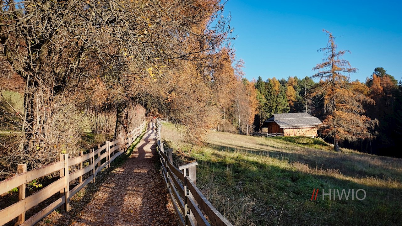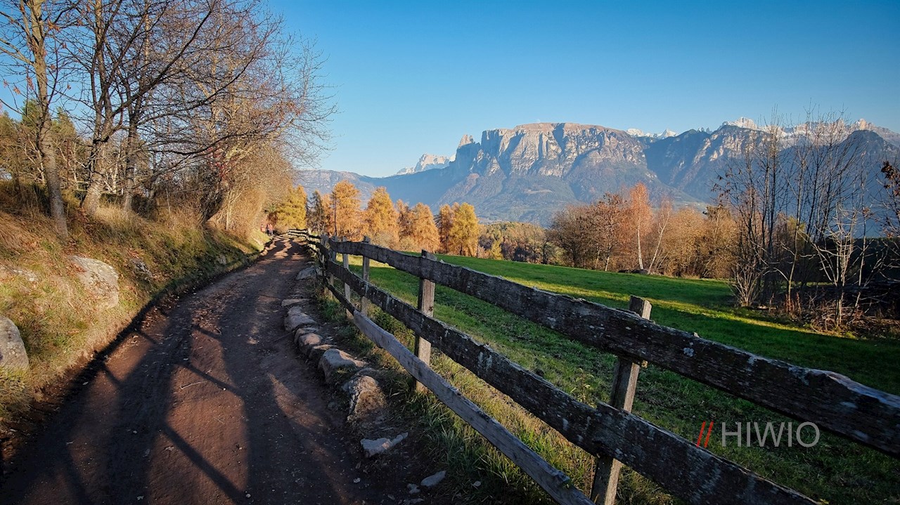 Sie führt mit geringem Höhenunterschied durch idyllische Haine und malerische Wiesen, auf denen sich traumverlorene Ausblicke auf die gegenüberliegende Bergwelt auftun. Insbesondere die Villnösser Geisler, der Schlern, die Völsegger Spitze, der Rosengarten und der Latemar stechen ins Auge.