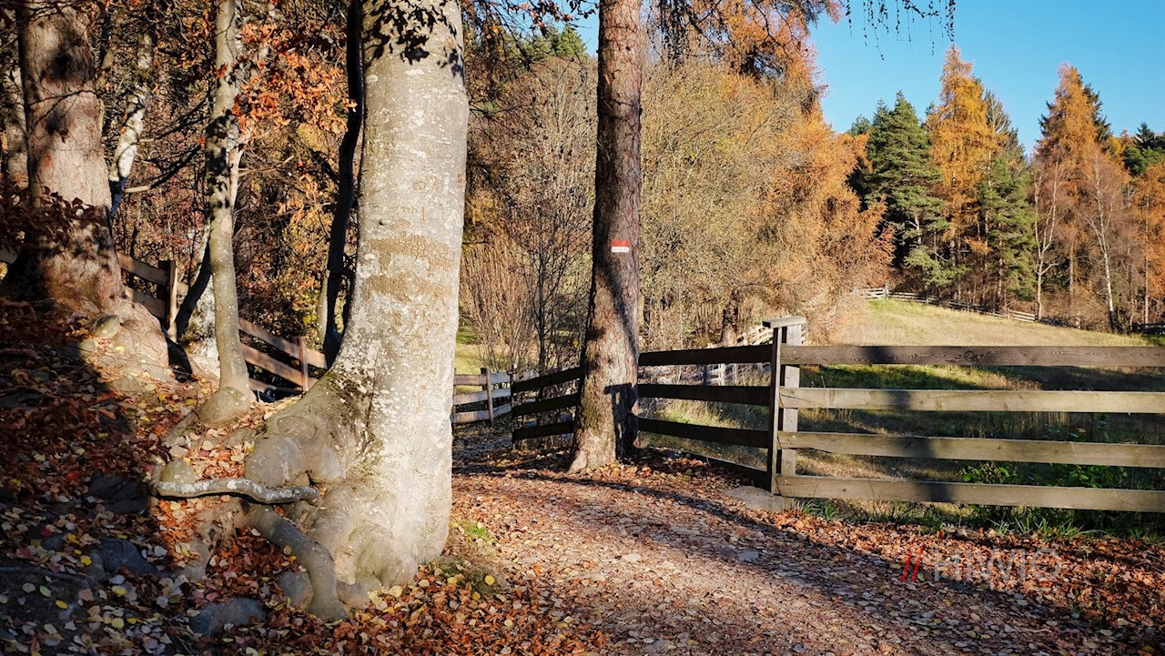 Hier folgt man der Markierung Nr. 35 in Richtung Klobenstein und gelangt so zum Eingang der Sigmund Freud Promenade am Ortseingang.