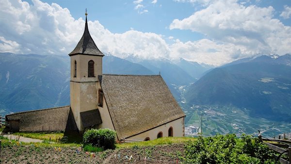 Eng an den Vinschger Sonnenberg geschmiegt, präsentiert sich der Bergbauernweiler St. Martin im Kofel oberhalb von Latsch. Von diesem bezaubernden Weiler führt eine leichte Wanderung zum Aussichtspunkt Dolomitenblick.