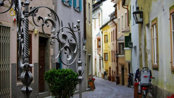 Selbiger ist übrigens auch auf dem Mosaik an der Außenfassade dargestellt: Schützend hält er die Hände über einen Jungen und ein Mädchen, welche die alte Brixner Tracht tragen.