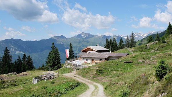 Schließlich lichtet sich der Wald und gibt den Blick auf die rustikale Freundalm zu Füßen der Telfer Weißen frei. Inmitten sanft gewellter Almwiesen lädt sie wenig später zur ersten Zwischenrast vor der beeindruckenden Kulisse der Stubaier Alpen im Westen, der Sarntaler Alpen im Süden und der Dolomiten im Südosten ein.