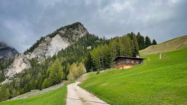 Die Wanderung zur Untertrumpedeller Schwaige bei Tiers vereint einfache Wanderwege mit einem traumhaften Ausblick auf den Rosengarten und Südtiroler Genussmomenten in der gemütlichen Hütte.