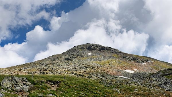 Weiterhin der Markierung Nr. 4 über den teils grasbewachsenen, teils geröllbeladenen Hang folgend, erreicht man nach einer weiteren halben Stunde das stattliche und zugleich schlichte Gipfelkreuz dieses aussichtsreichen Gipfels.