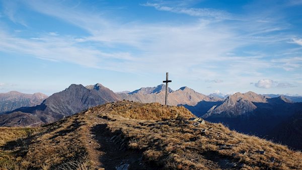 Vom Glaitner Joch könnte man noch zum nahen Glaitner Hochjoch weiterwandern, das mit einem anmutigen Gipfelkreuz und einem ebensolchen Ausblick aufwartet.