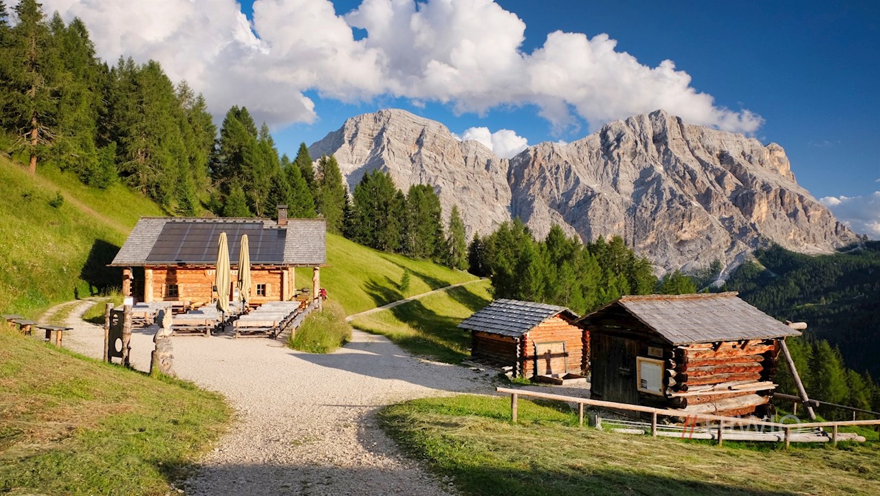 Die Ütia da Rit oberhalb von Wengen lädt inmitten der bezaubernden Bergwelt der Gadertaler Dolomiten zu Tisch. Vom Hotel Ciurnadú in Wengen führt eine schöne Wanderung zu dieser idyllischen Berghütte am Fuße des Pares.