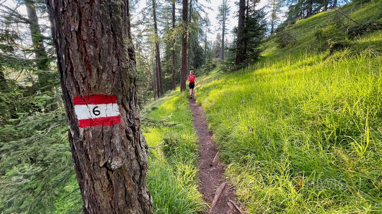 Vom Le de Rit steigt der Weg Nr. 15 durch Wald und Wiesen zum Hotel Ciurnadú ab, von dem die bereits bekannte Straße zum nahen Wanderparkplatz zurückführt.
