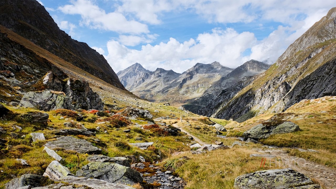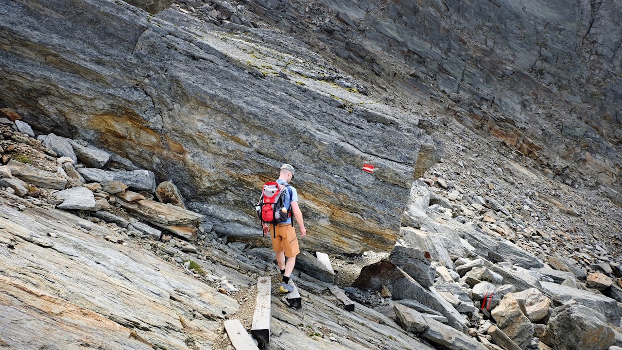 An besagter Weggabelung folgt man dem rechts abzweigenden Weg Nr. 12A zum Vorderen Umbaltörl, von dem er über Geröll und Blockwerk auf den Ahrner Kopf ansteigt. Auf 3.056 m Höhe entfaltet sich hier ein atemberaubender Ausblick auf die vergletscherte Dreiherrenspitze, den Umbalkees, die Rötspitze und die restliche ringsum aufragende Bergwelt.