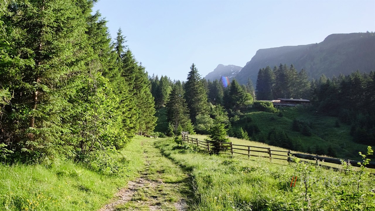 Den Beschilderungen in Richtung Allrissalm folgend, führt der breite, gleichmäßig ansteigende Wanderweg Nr. 27 vom oberen Parkplatz durch den Wald. Wer einen schnelleren, dafür aber etwas steileren Anstieg bevorzugt, kann auch die Abkürzungen über die wenig später abzweigenden Waldpfade nehmen.