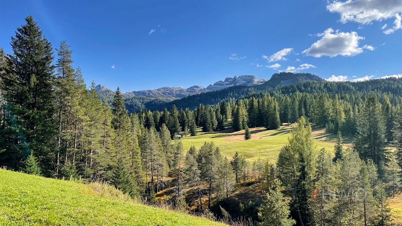Von Armentarola zieht sich der Wanderweg durch Wiesen und lichte Haine in Richtung Capanna Alpina weiter.