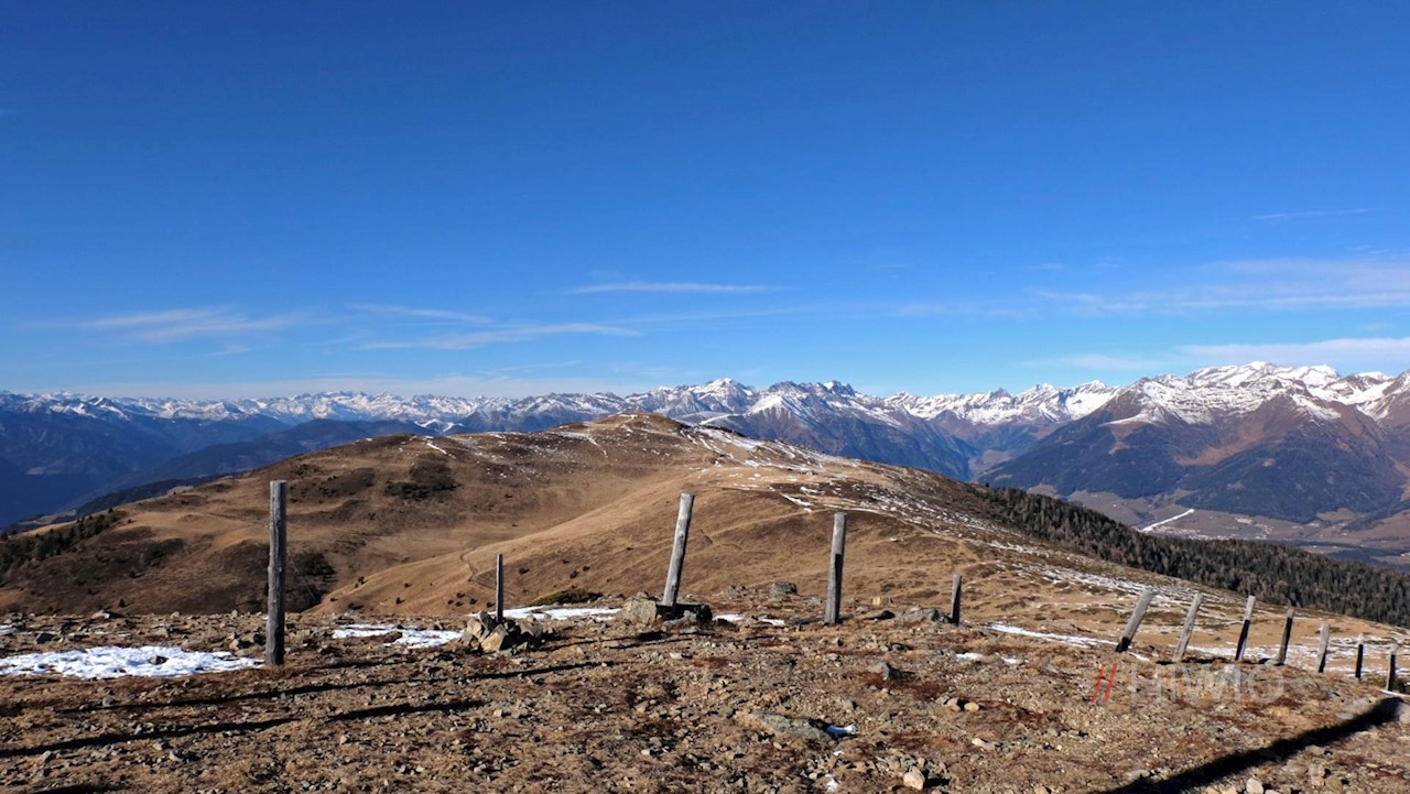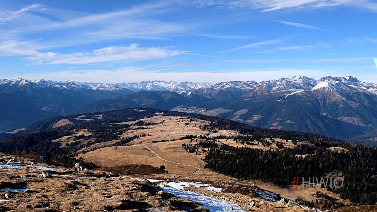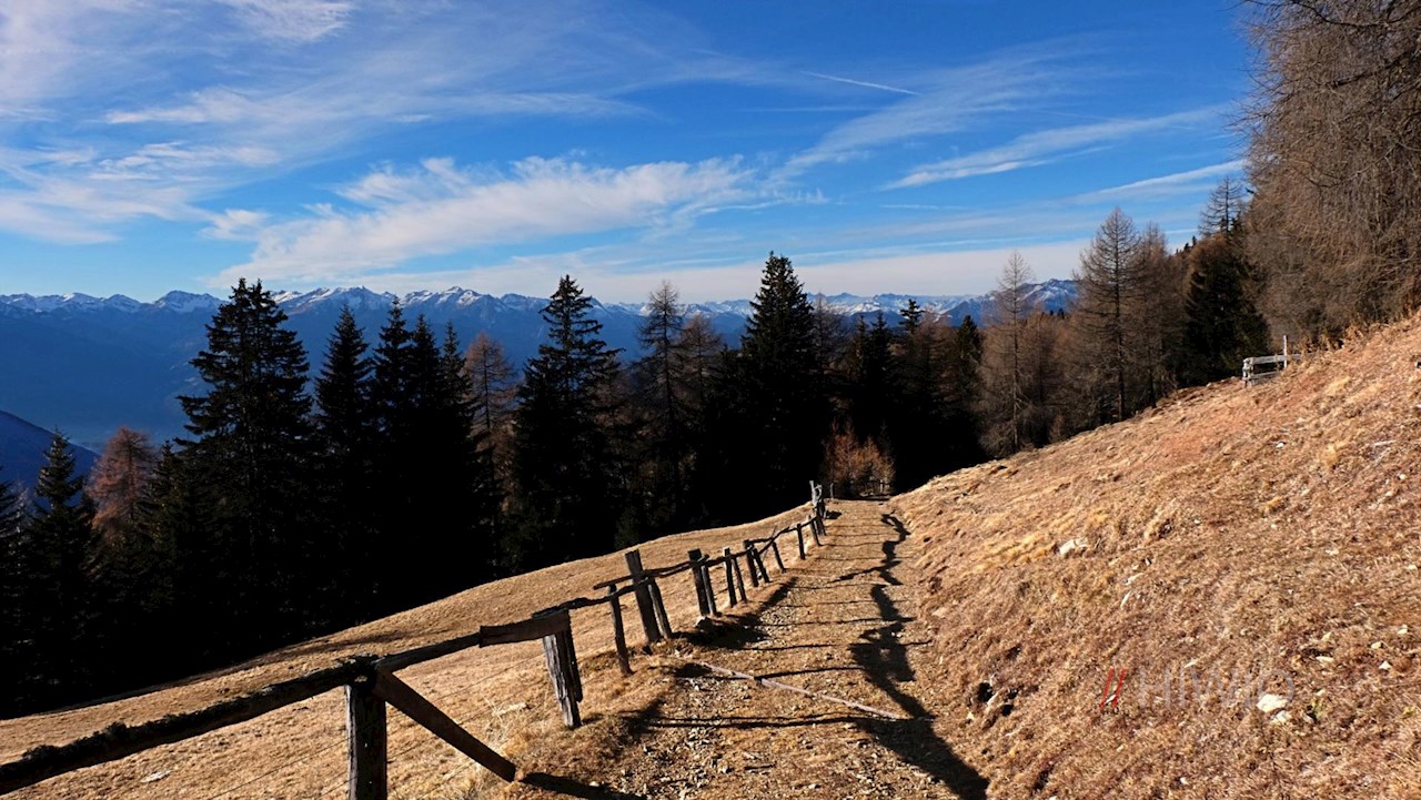 Von der Kreuzwiesenalm folgt man zunächst dem Weg Nr. 12A, bis das Wegeschild Nr. 10 den direkten Weg auf den Campill (Hörschwanger Kreuz) weist. Neben dessen Gipfelkreuz entfaltet sich schließlich ein atemberaubendes Panorama: Während sich zu unserer Linken die Rieserfernergruppe und die Zillertaler Alpen erheben, reihen sich zu unserer Rechten namhafte Dolomitengipfel wie der Heiligkreuzkofel oder der Peitlerkofel aneinander. Zu unseren Füßen erstreckt sich indes der Brunecker Talkessel.