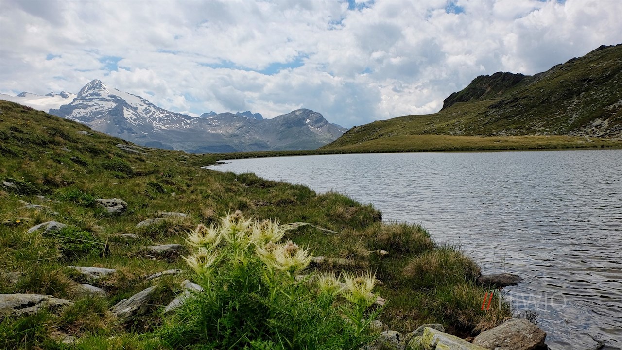 Am lauschigen See zweigt rechts der nunmehr schmale Steig Nr. 9A ab, der sich vor der beeindruckenden Kulisse der Rieserferner Bergwelt durch die teils steinbeschlagenen Grashänge und über Blockwerk zu den kleinen, teils verlandeten Napfenseen hochwindet.