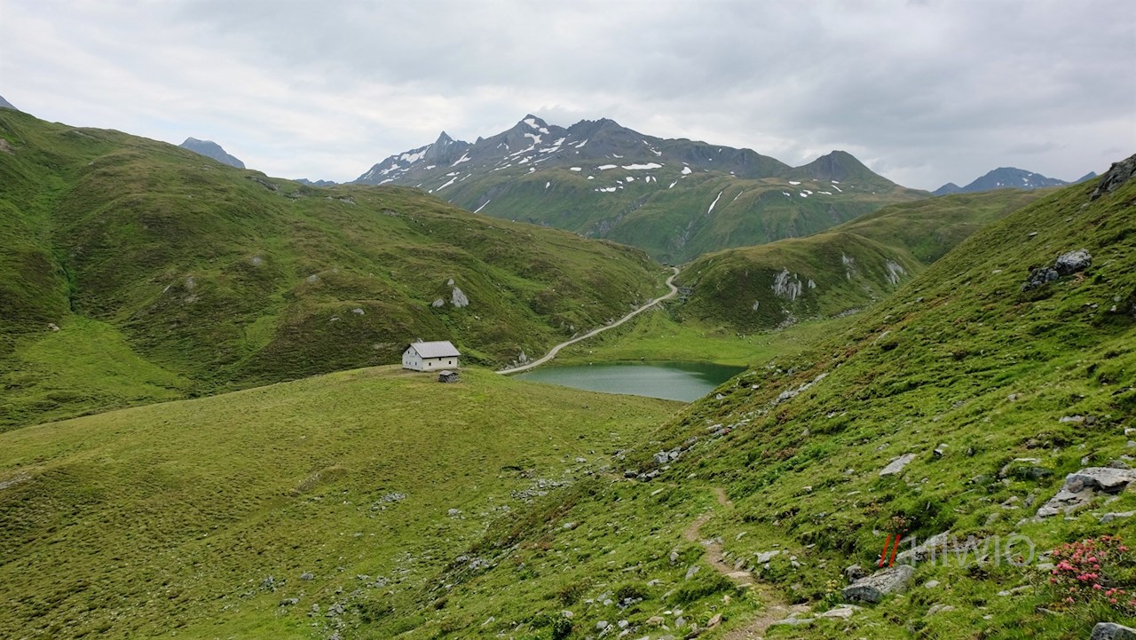 Den Rückweg von der Dreieckspitze tritt man zunächst auf dem Hinweg an. Bei der Bärenluegscharte folgt man diesmal aber dem links abzweigenden Weg Nr. 9A, der über die steilen Hänge zu den friedvollen Koflerseen zu Füßen des Stutennock hinabführt.