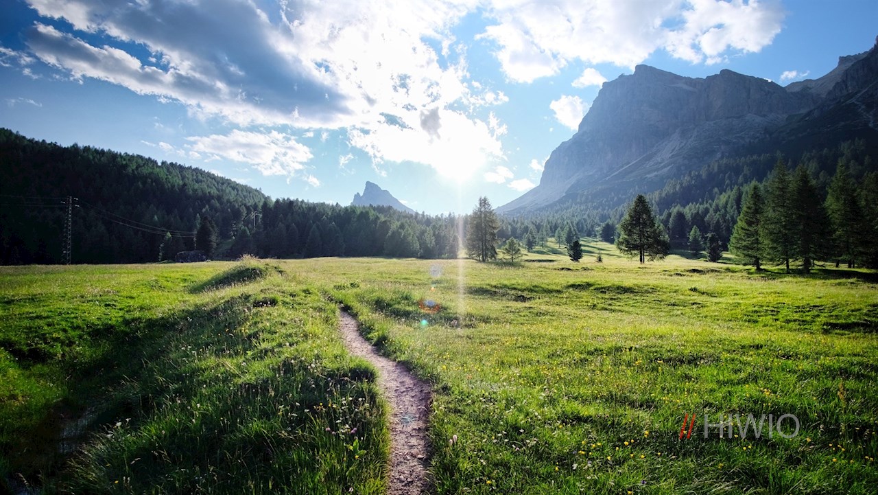 Nahe der Scoiattoli Hütte zweigt der teils stein- und felsbeschlagene Pfad Nr. 440 in Richtung Pian dei Menis ab. Er führt im teils sanften, teils etwas steileren Abstieg durch blumenreiche Wiesen und Waldhänge und eröffnet dabei verträumte Ausblicke auf die ringsum aufragenden Dolomiten.