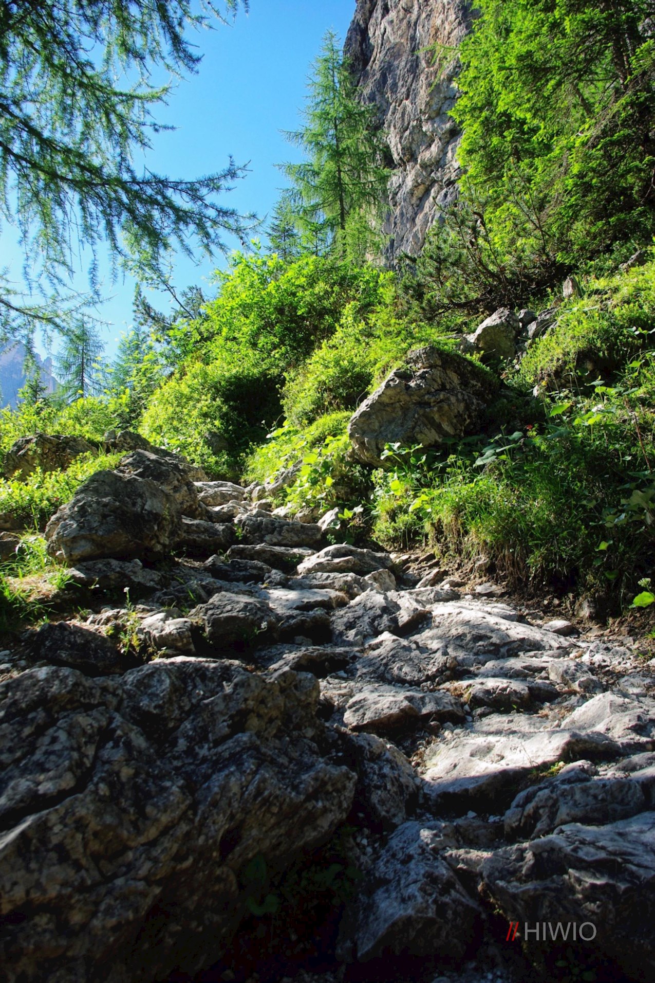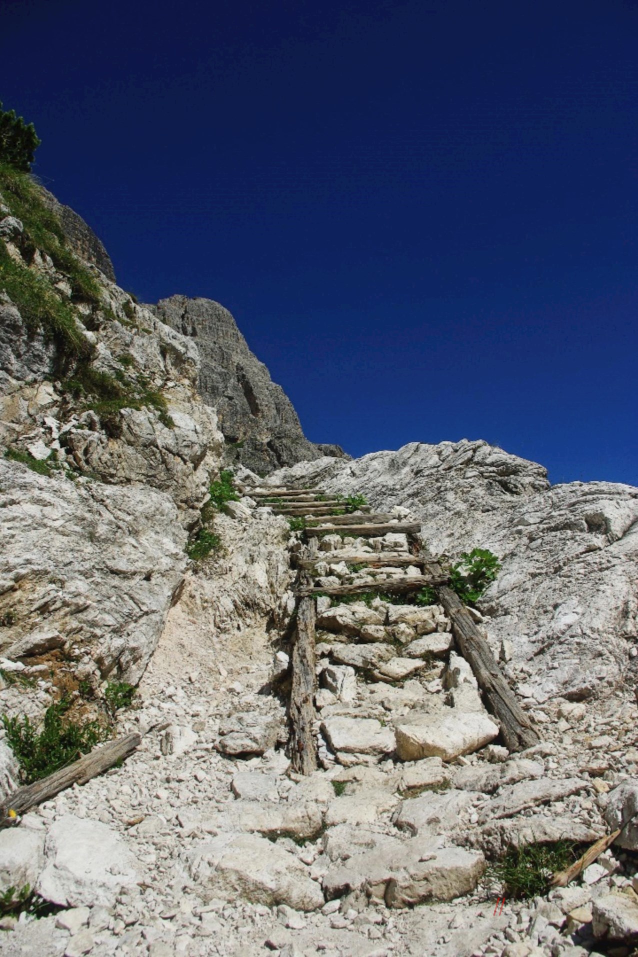 Hinter der Talschlusshütte behält man weiterhin den Weg Nr. 102 bei, bis man auf den links abzweigenden Steig Nr. 103 gelangt. Dieser führt über eine latschenbewachsene Anhöhe und über steinige Hänge zur Zsigmondy-Comici-Hütte auf 2.224 m Höhe empor.