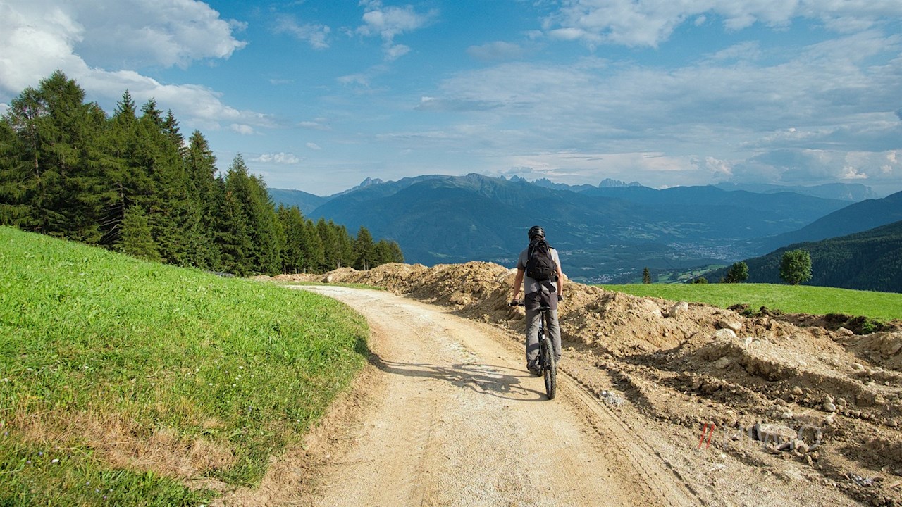 Vom kostenpflichtigen Parkplatz folgt man dem sanft abfallenden Wanderweg Nr. 15 in Richtung Talstation Gitschberg, auf dem sich bereits schöne Ausblicke auf die Bischofsstadt Brixen, die Plose und die dahinter liegenden Dolomiten auftun.