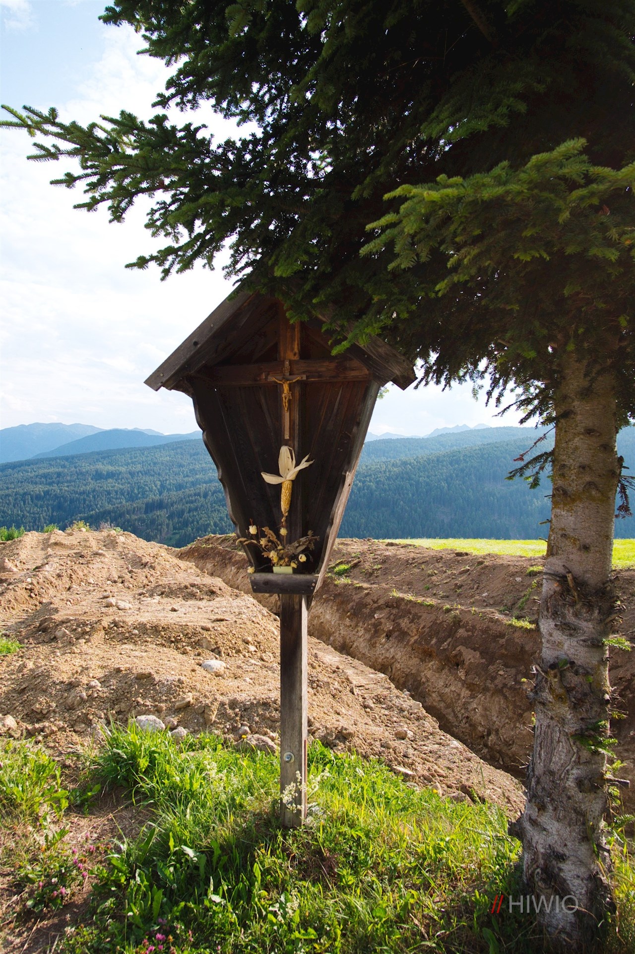 Schließlich verlässt man den Weg Nr. 6 und wandert auf den gleich darunter liegenden, mit der Nummer 14 ausgeschilderten Möserweg hinab (Vorsicht: An dieser Weggabelung ist der Wegweiser zur Bacherhütte leicht zu übersehen. Es handelt sich um jene Abzweigung, an der die Beschilderung Nr. 12A den Weg zur Talstation Gitschberg weist).