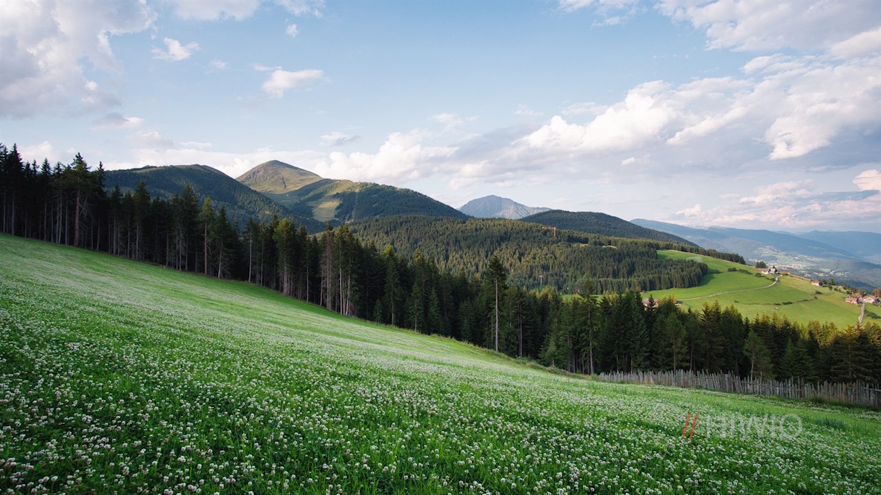Oberhalb von Meransen servieren die freundlichen Hüttenwirte der Bacherhütte ihren Gästen liebevoll zubereitete Almköstlichkeiten. Zu dieser gemütlichen Almhütte im Wandergebiet Gitschberg Jochtal führt ein einfacher Waldweg, der auch mit Kindern und geländetauglichen Kinderwagen erwandert werden kann.