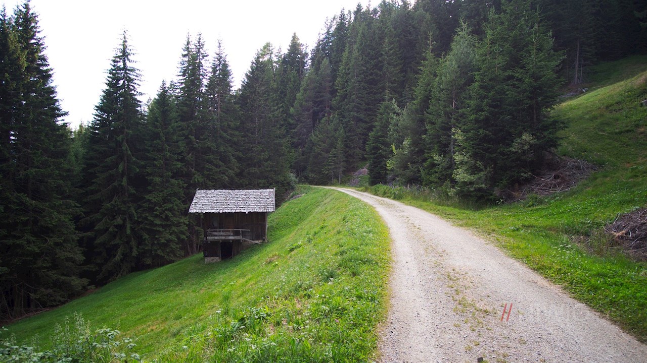 Die gemütliche Waldwanderung zur Bacherhütte nimmt am Eingang des Altfasstals oberhalb von Meransen ihren Ausgang. Der große Wanderparkplatz nahe den Walder Höfen bietet reichlich Parkmöglichkeiten.