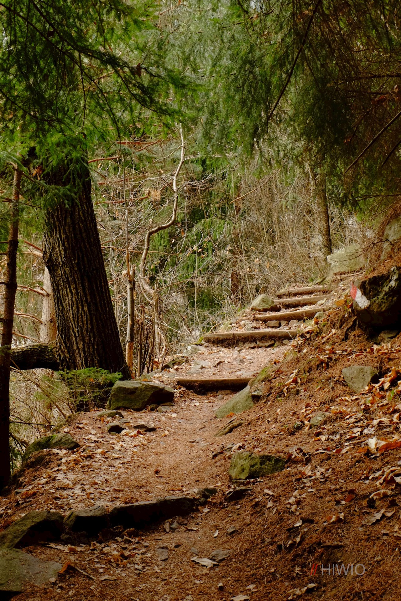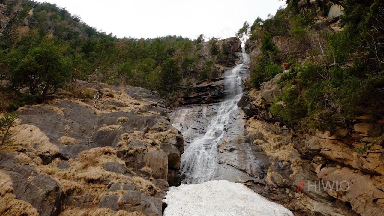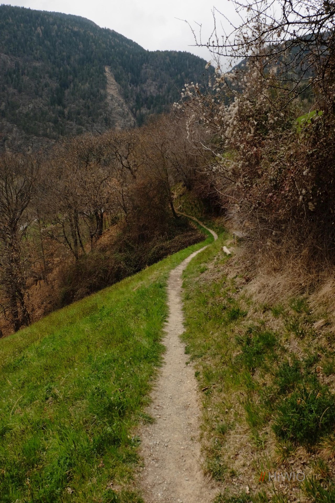Stets den Wegweisern mit der Aufschrift „Wasserfallweg“ folgend, wandert man zunächst durchs Dorf, quert Wiesen und Kastanienhaine und tritt zuletzt in einen schattenspendenden Nadelwald ein.