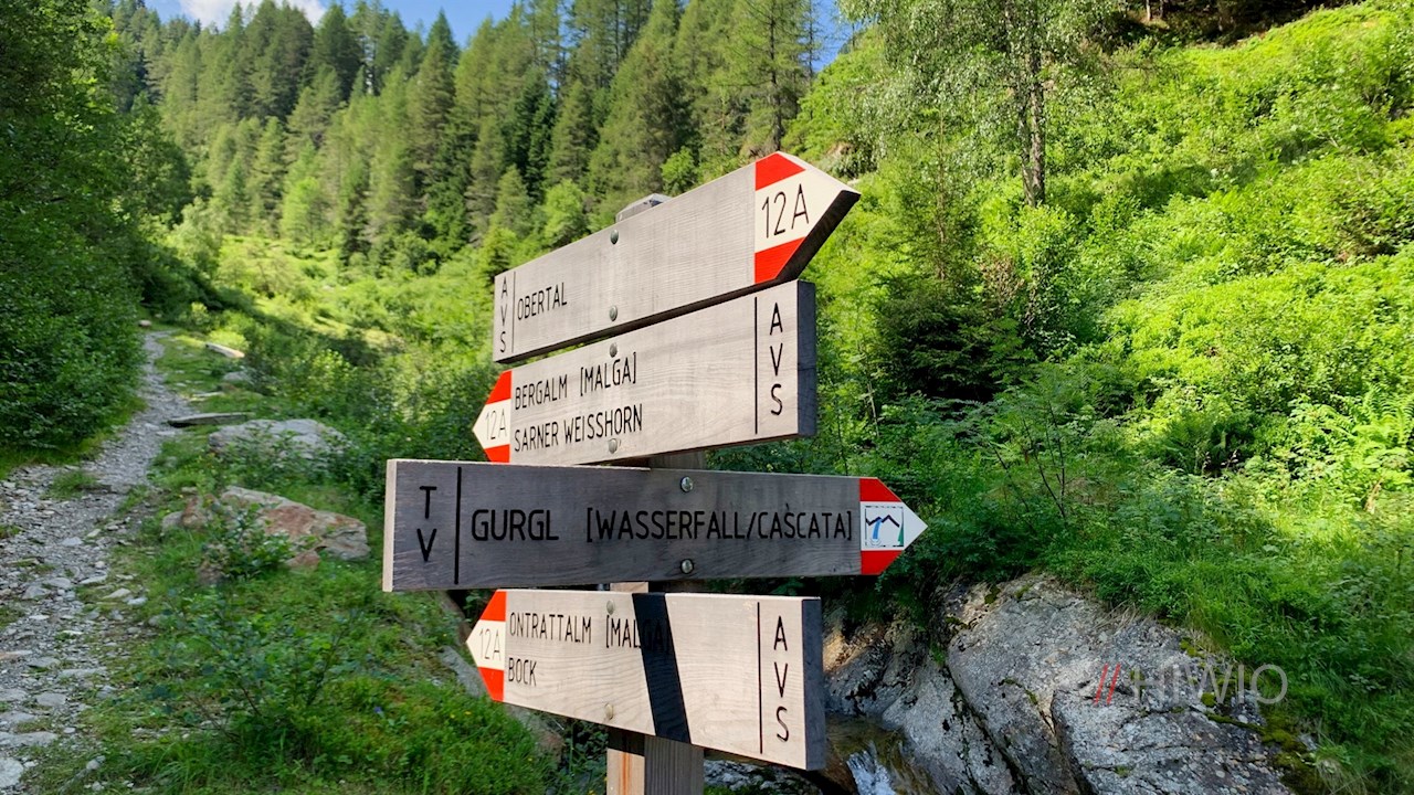 Die Wanderung zur Bergalm beginnt auf dem Wanderparkplatz hinter dem Weiler Obertal in Jaufental (hinter Obertal zweigt links ein Sträßchen zum Parkplatz ab).