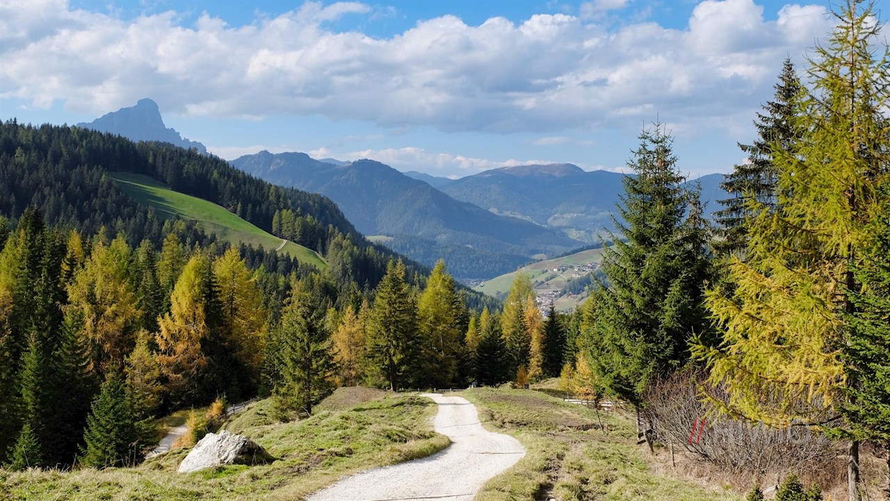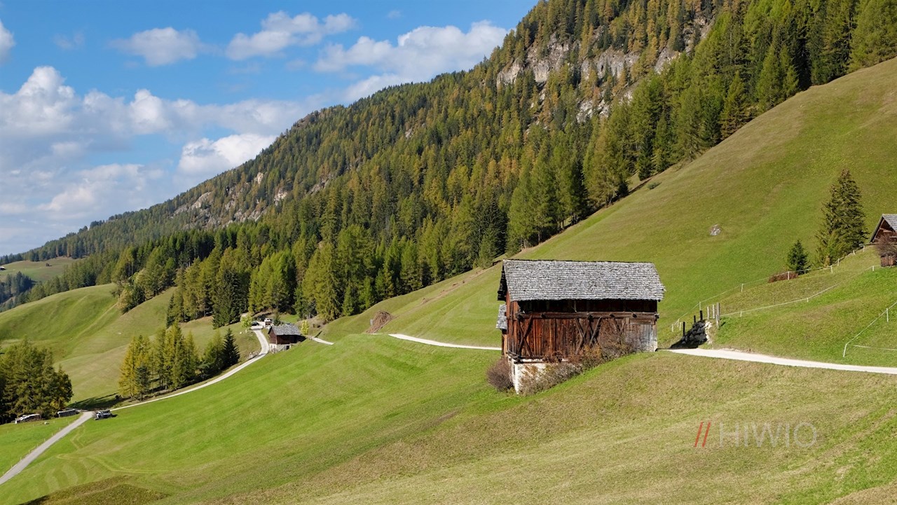Die Wanderung auf die Antoniusspitze nimmt auf einem der Wanderparkplätze hinter dem Gasthaus Ciurnadú ihren Anfang. Hier folgt man dem breiten Weg Nr. 15 durch die sonnenverwöhnten Wiesen.