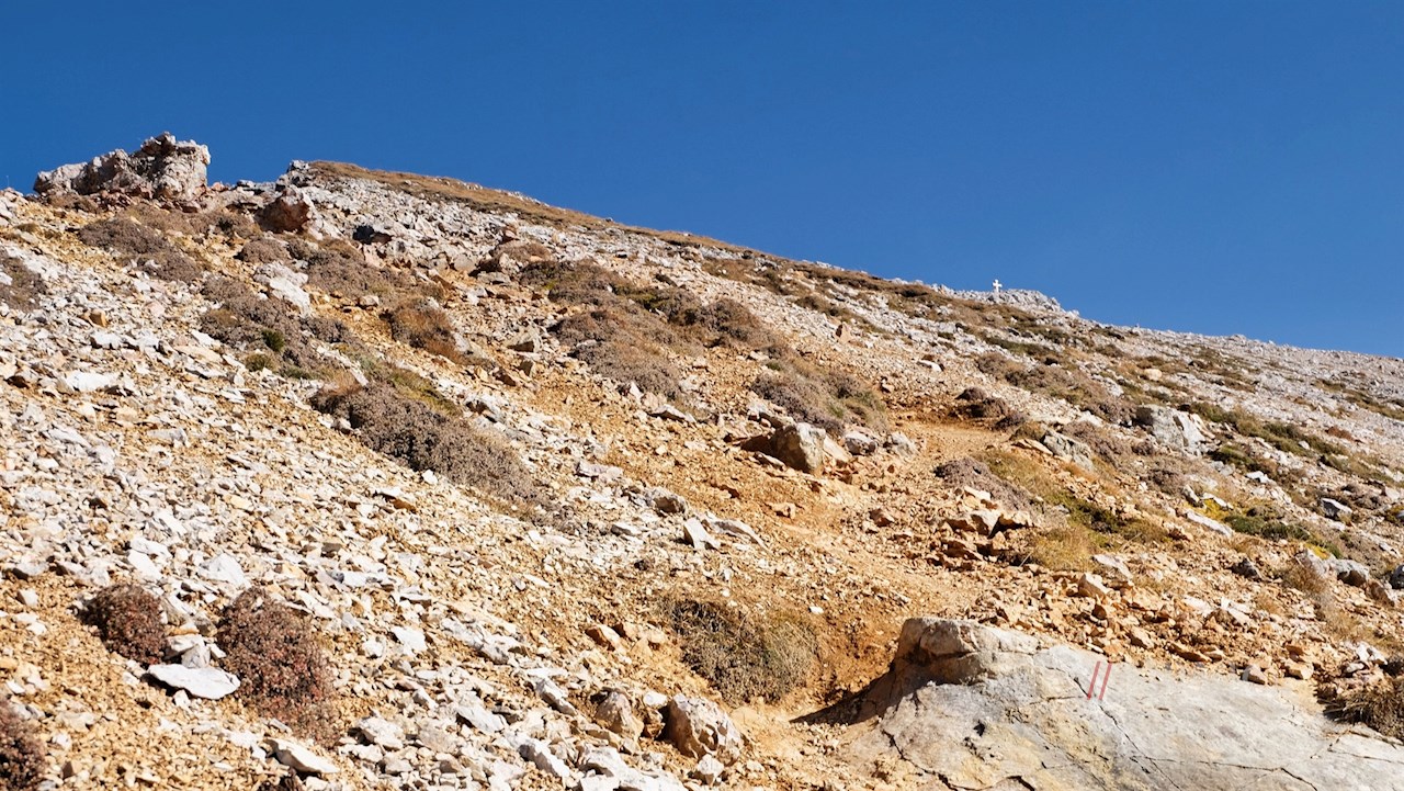 Nun folgt der etwa halbstündige Anstieg auf die Antoniusspitze, deren Gipfelkreuz bereits von hier aus zu erkennen ist.