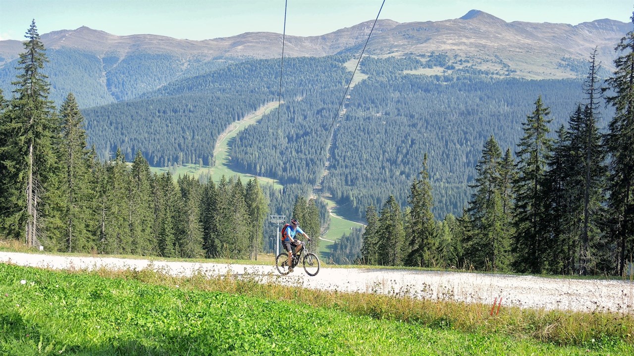 Mit dem Mountainbike geht es heute von Toblach zur beliebten Nemesalm in Sexten.