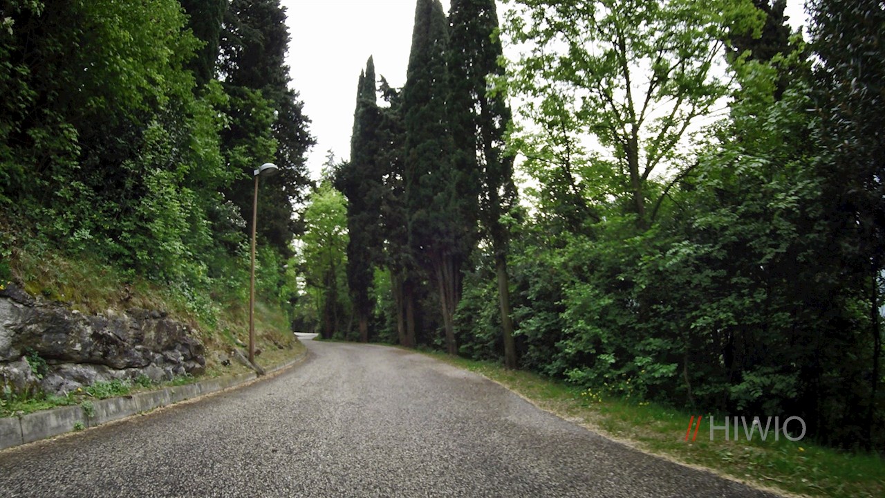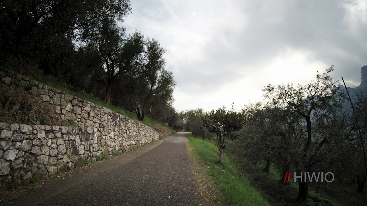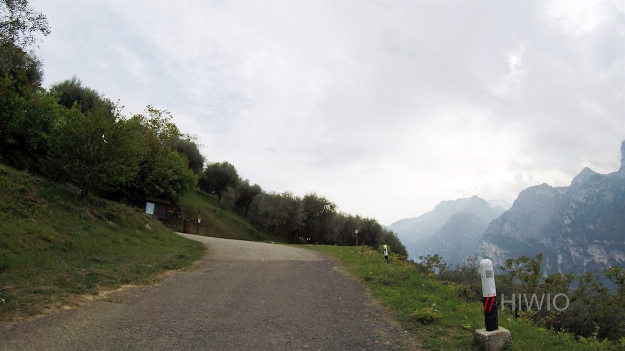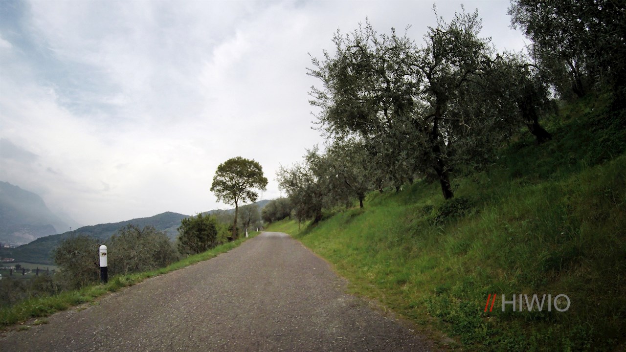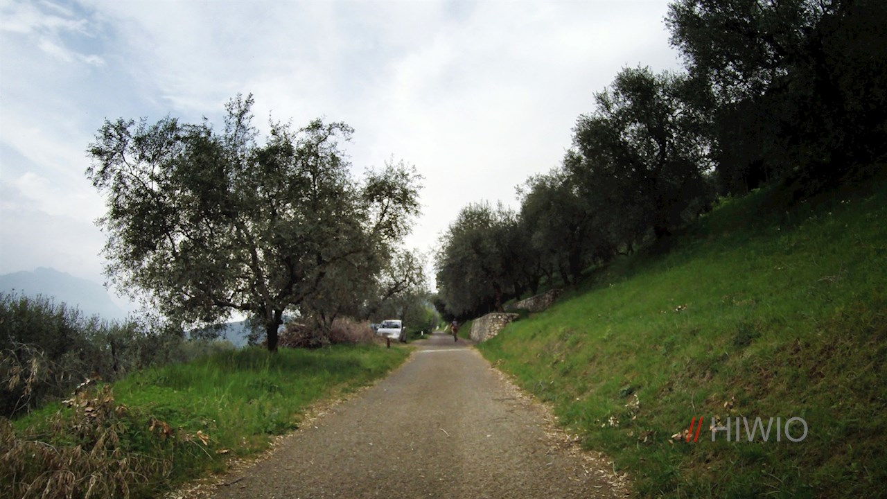 Anfänglich an Häusern, dann an Olivenhainen und Wald vorbei, windet sich das asphaltierte Sträßchen in sieben Kehren nach oben. Bereits während der Auffahrt erschließen sich schöne Ausblicke auf den nördlichen Gardasee und seine Umgebung.