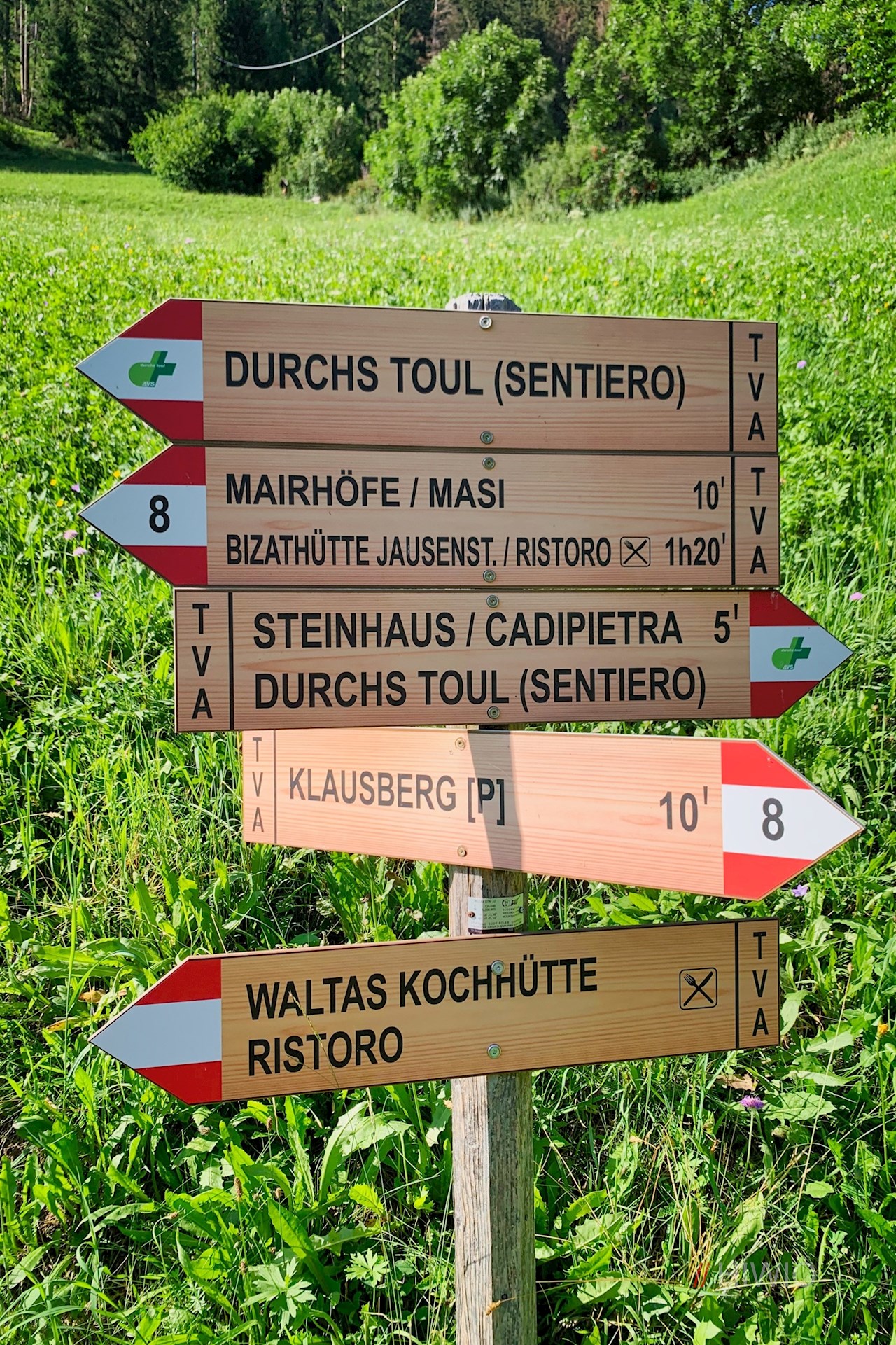 Die Wanderung zur Bizathütte beginnt bei der Talstation der Seilbahn Klausberg in Steinhaus, um die sich zahlreiche Parkplätze finden.