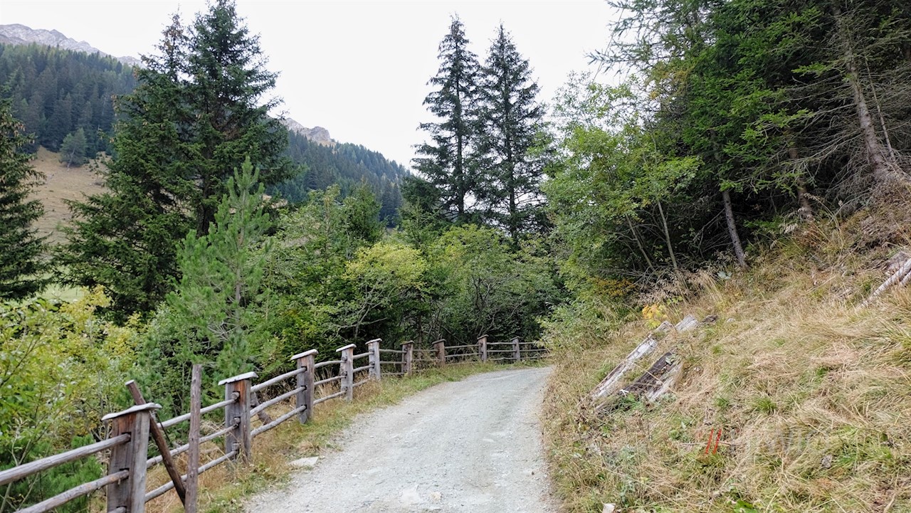 Zunächst folgt man der Straße, bis am rechten Wegesrand der breite Wanderweg in Richtung Bodenalm abzweigt. Er führt im sanften Anstieg durch einen lichten Wald.