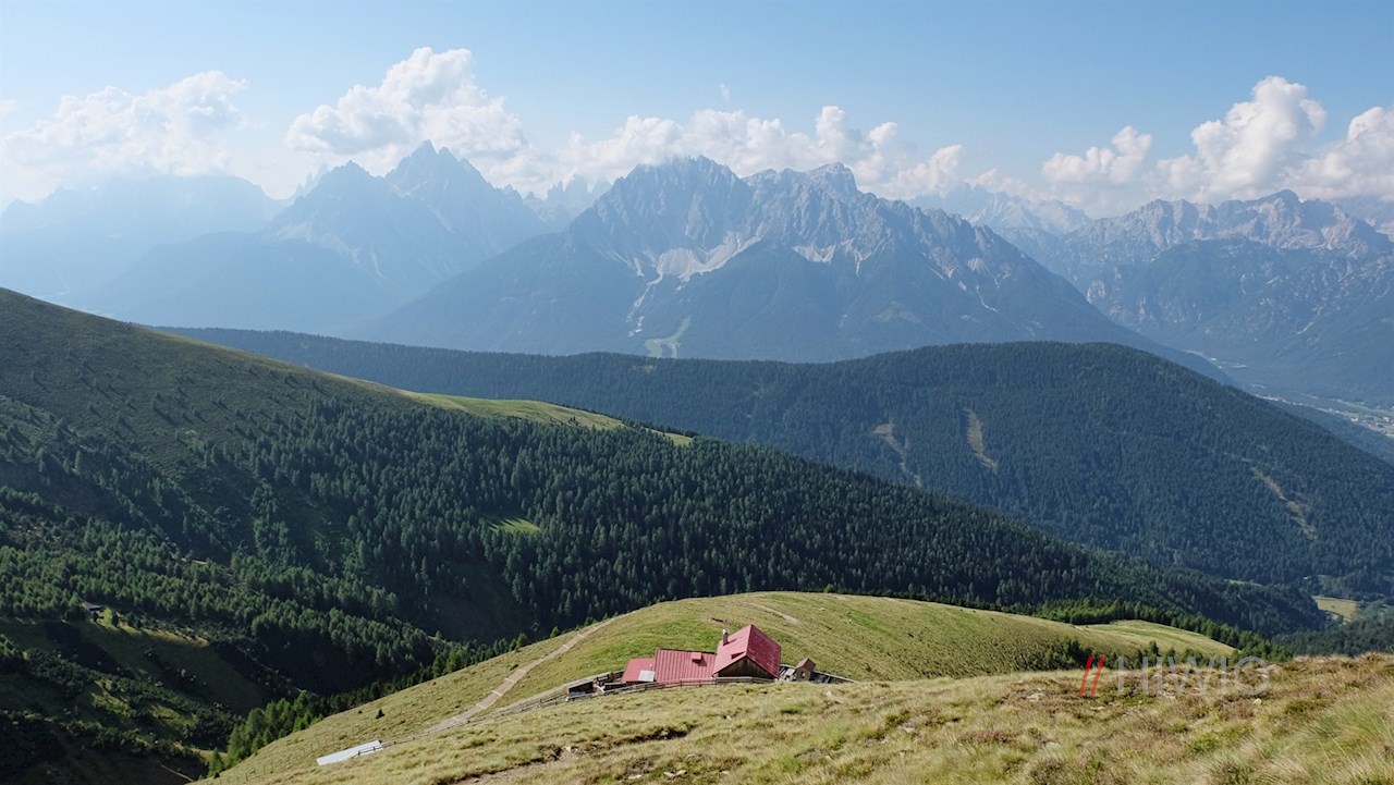 Nach gut zwei Stunden erreicht man diese einladende Schutzhütte mit ihrem markanten roten Dach, die angesichts ihrer Lage zu Füßen des frei aufragenden Toblacher Pfannhorn auch unter dem Namen Pfannhornhütte bekannt ist.