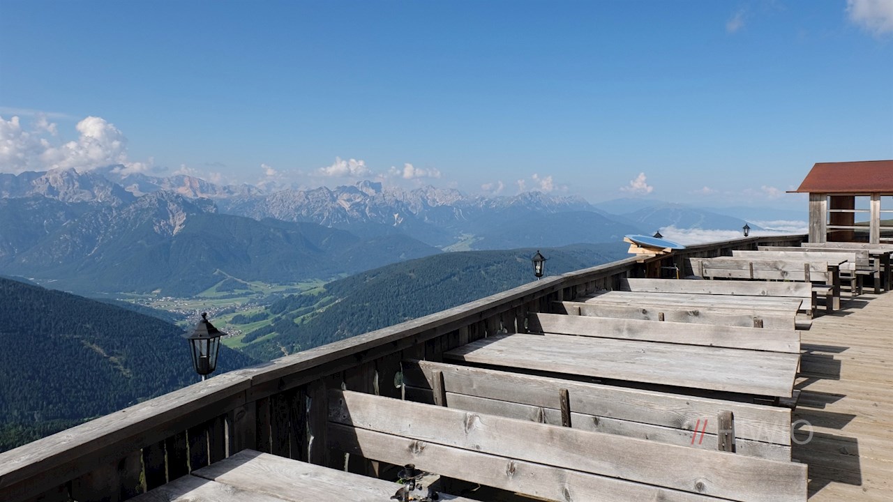 Auf 2.340 m Höhe werden die Gäste mit schmackhaften Südtiroler Gaumenfreuden verwöhnt. Insbesondere aber versetzt der malerische Blick auf die gegenüberliegenden Dolomiten und das tiefer liegende Tal Einheimische wie Touristen ins Staunen.